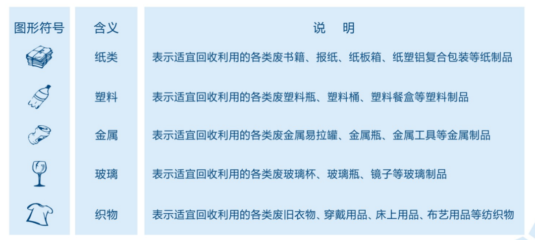 是指适宜回收利用的生活垃圾,包括纸类、塑料、金属、玻璃、织物等。